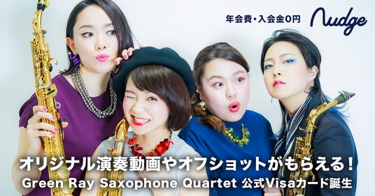 次世代クレジットカード「Nudge(ナッジ)」に女性サックス四重奏×YouTuber「Green Ray Saxophone Quartet」クラブが誕生