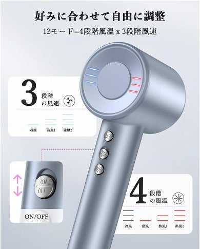 多段階の温度と風速の調整機能を備えており、さまざまな髪質やスタイリングのニーズに適しており、髪のドライ時間を自由に対応できます。
