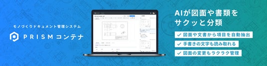 『PRISMコンテナ』は、ものづくりに関するあらゆるデータの資産化をサポートする図面・文書管理システムです。CADファイル、検査成績書などの社内のあらゆるファイルを一元管理できます。 AIがエクセルファイルを丸ごと読み取り、データベースの作成をサポートします。ブラウザさえあればどの部署からも閲覧、編集が可能です。自社に必要な検索項目(材質、寸法など)をプロパティとしてカスタマイズでき、業務になじむ検索画面を作ることができます。