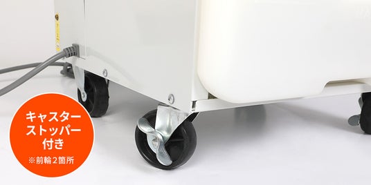 本製品は、設置工事や室外機の必要なしに、購入当日からすぐに使用できます。キャスターが付いており、移動も簡単です。また、キャスターの前輪2箇所にはストッパーがついているため、安定した設置ができます。