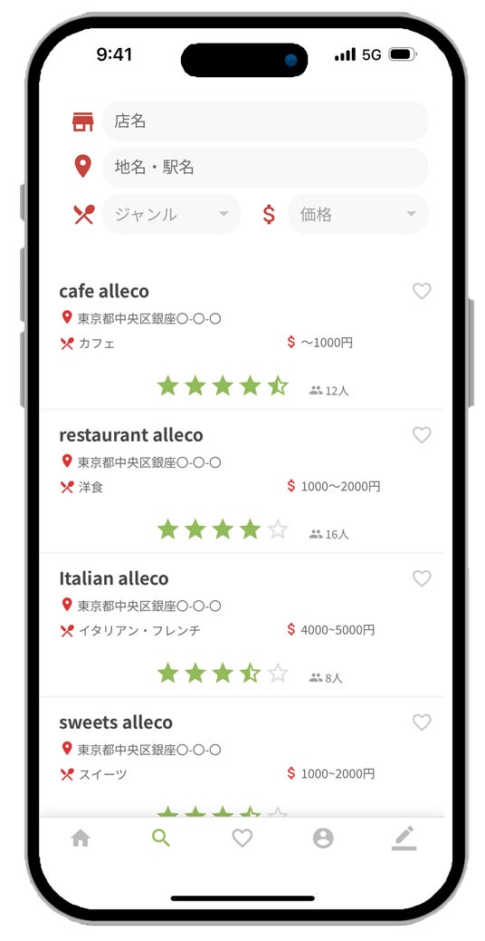 3.詳細検索機能で、店名、地名・駅名、ジャンル、価格による検索が可能に!※駅名検索は、口コミのあるお店に限られます。