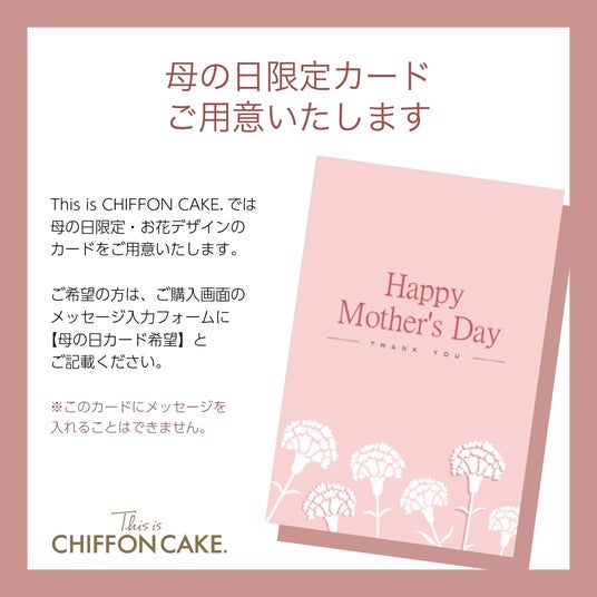 数量限定!母の日デザインカード登場This is CHIFFON CAKE.では通常デザインのメッセージカードの他、