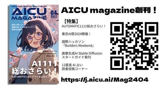 2024年4月30日に創刊号となる「AICU magazine」は「つくる人をつくる、わかるAIをとどける」をビジョンに、生成 AI に興味があり、AI クリエイターとして活躍したいハイセンスな中高生、美大・芸大・専門学校生や大学生、クリエイティブAIに興味がある社会人やシニア層に向けて、AI の楽しさや AI でできること、使い方、イベント情報を伝えるニューメディアとして開発されました。