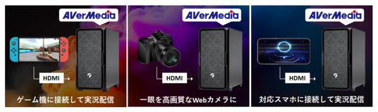 ゲーム実況・ライブ配信・ビデオカメラからの映像取り込みを行う多くのユーザーに大人気のAVerMedia製HDMIキャプチャーボードを搭載した推奨パソコンが登場!安心してお使いいただけるよう動作検証を行い、さらに映像編集などの重たい作業も快適に動作できるよう、CPUやメモリ・グラフィックスカードなどパソコンとしての基本性能にもこだわったマルチユースなPCです。