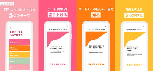 株式会社セキララカードはカップル質問ゲーム「Sekirara」アプリをリリースいたしました。アプリを通してより多くのカップル・夫婦の対話のきっかけを作ります。