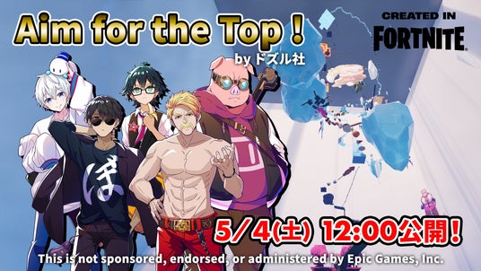 株式会社EbuAction(所在地:東京都渋谷区 代表取締役 野田 慶多)は、株式会社ドズル(所在地:東京都品川区 代表取締役社長 ドズル)の協力のもと、人気オンラインゲーム「Fortnite」内で、ゲーム実況グループ「ドズル社」のメンバーが登場するアスレチックゲーム「Aim for the Top ! by ドズル社」を制作しました。