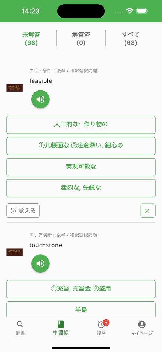 WordQuestは、単語帳タブからアクセスできます。