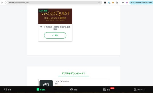 このたびディクトでは、九州大学共創学部様の制作した上級レベル英単語帳「WordQuest(ワードクエスト)」を、DiQt内でデジタル単語帳として提供を開始いたしました。
