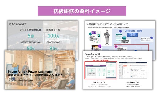また、ローコード開発の定着化のために単発の研修だけで終わらず、ハッカソンや社内ユーザーコミュニティの形成まで支援します。