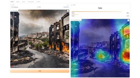 ▲フェイク検出時にAIが判定のために着目した場所がヒートマップで示される。