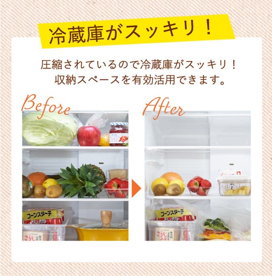 かさばる食材が圧縮されて、冷蔵庫がスッキリ!