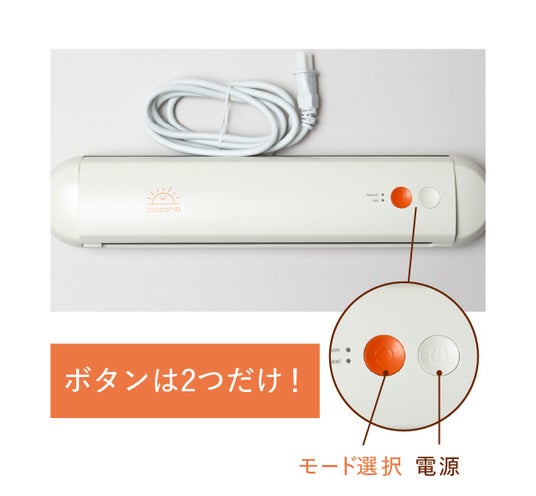 ボタンは電源ボタンとモード選択ボタンの2つのみ。