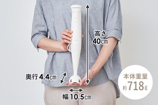 調理に必要な3役をこなし、無駄なパーツを省くことで驚きの低価格を実現した、mottoleのハンディブレンダー。有線のため使いたい時にすぐ使えてパワフルな点も特長。