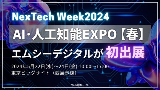 エムシーデジタル株式会社(本社:東京都千代田区、代表取締役社長:河内 伸学)は、2024年5月22日(水)~5月24日(金)に東京ビックサイトで開催される展示会 NexTech Week 2024【春】の 第8回 AI・人工知能EXPO【春】に初出展いたします。