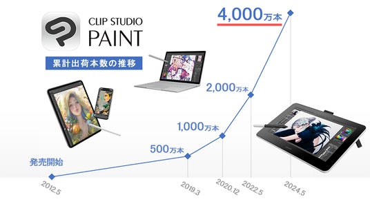 イラスト・マンガ・Webtoon・アニメーション制作アプリ「CLIP STUDIO PAINT」の全世界における累計出荷本数が4,000万本に