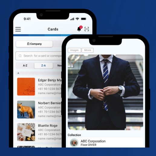 ダイバービズの名刺管理アプリは、会社名、連絡先、SNSプロフィール、ウェブサイトなどをセキュアに他人と共有することができます。