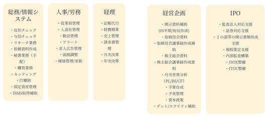 また、レイター付近ですと、IPO支援、スポットCFO代行など、起業家や成長段階の企業を支援する等、バックオフィス全体を包括し依頼企業様とともに成長していきます。