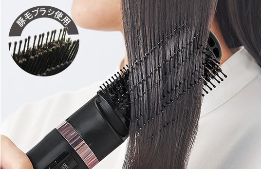 ■ 高密度の豚毛ブローブラシで、ツヤとまとまりのある髪へ