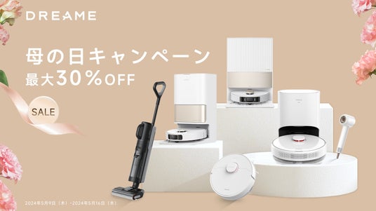 シー・エフ・デー販売株式会社(社長:三谷弘次、本社:愛知県名古屋市)が代理店を務めます、スマート家電の総合メーカーDreame Technologyの日本支社であるドリーミーテクノロジージャパン株式会社(東京都中央区)では、5月12日の「母の日」に向けて、DreameのAmazon、楽天市場、Yahoo!ショッピング公式ストアにて、最大30%OFFの期間限定のセールを開催します。なお、公式SNS(X・Instagram)において、母の日のお祝いとして、ご家族でお楽しみいただけるグッズがもらえるプレゼントキャンペーンを実施いたします。