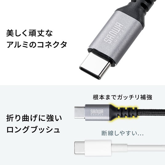 サンワサプライ株式会社(本社:岡山市北区田町1-10-1、 代表取締役社長 山田 和範)が運営している直販サイト『サンワダイレクト』では、USB PD60W対応なのでスマホやタブレット、Nintendo Switchなどのゲーム機の充電ケーブルやデータ通信ケーブルに最適で高耐久で断線に強いメッシュケーブルと片側L字コネクタを採用したUSB Type-Cケーブル「500-USB081-1BK(1m)」、「500-USB081-2BK(2m)」を発売しました。
