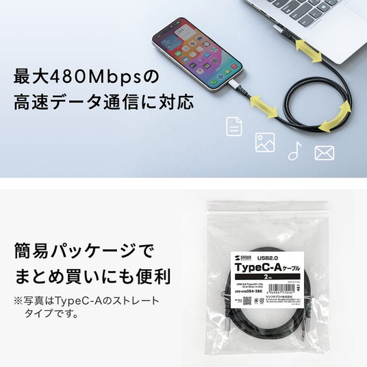 高密度編組で覆われたポリエステルメッシュケーブルを採用。断線しにくく、靭性が高いため、長期間の利用でも安心です。また、USB2.0の「HI-SPEED」モードに対応し、高品質なデータ転送も実現。耐久性と高性能を兼ね備えたケーブルで、快適な利用が可能です。