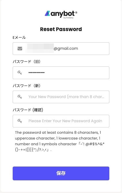 anybotに携わる管理者にもセキュリティーリスク低減に協力してもらえるよう、字数や使用する文字種類の多い、より強力なパスワードを設定できる機能を追加いたしました。