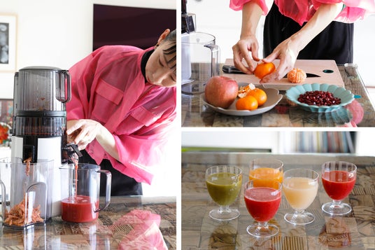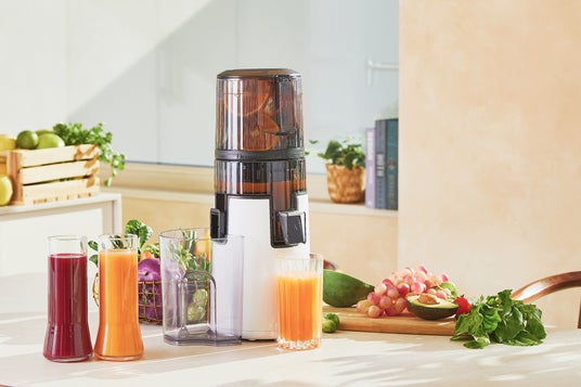 刃を使用せず人間の手で搾るようにやさしく搾るから、食材にかかるストレスを最小限に抑え、野菜や果物の風味を保つだけなく、栄養も逃しません。また、空気にも触れにくいので、時間が経っても酸化がしにくく最後の一滴まで美味しいジュースが楽しめます。