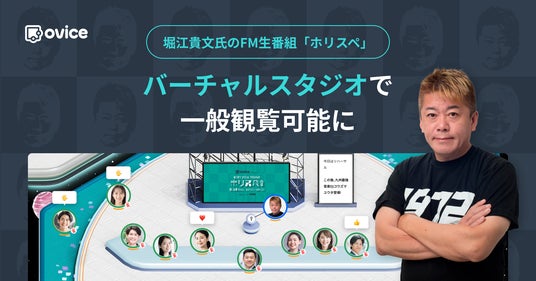 oVice株式会社(本社:石川県七尾市、代表取締役CEO:ジョン・セーヒョン)は、株式会社CROSS FM(本社:福岡県北九州市、代表取締役会長:堀江貴文)が2024年5月14日(火)13~19時に放送する特別番組「ovice presents 堀江貴文 Special Program ホリスペ!supported by カーサプロジェクト」において、リスナーが自由に収録を観覧できるバーチャルスタジオとして「ovice(オヴィス)」が利用されることをお知らせします。バーチャルスタジオ内では、アバターとなって他のリスナーの方たちと一緒にラジオの生放送を聴くことができるため、実際にみんなで収録スタジオを観覧しているような臨場感を味わうことができます。