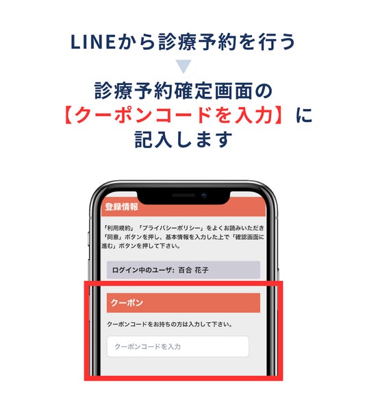 2. 「HAHA05」を診療予約確定画面の【クーポンコードを入力】に記入します。