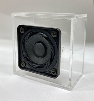 ※左の写真のようにスピーカーユニットを構造体へ取り付け、スピーカー表面のみ外側に出ている状態において防沫仕様(IPX4)となります。