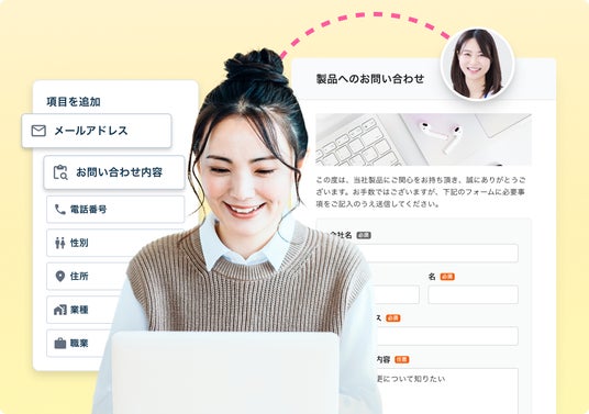広範囲にカスタマイズできるフォーム項目や自由なレイアウトで作成できるフォームビルダーを搭載。お問い合わせフォームやお申し込みフォームなど、あらゆるビジネスのニーズを満たすWebフォームを短時間で公開できます。