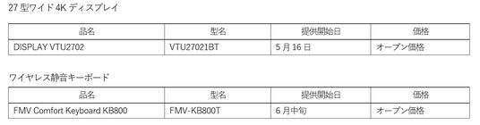 富士通クライアントコンピューティング株式会社(本社:神奈川県川崎市 代表取締役社長:大隈健史 以下、FCCL)は、仕事も趣味もさらに快適にする、周辺機器を発表します。USB Type-C端子を搭載した高性能27型ワイド4Kディスプレイを5月16日より、従来からFMVのキーボードで磨き上げた技術を投入したワイヤレス静音キーボードを6月中旬より提供を開始します。