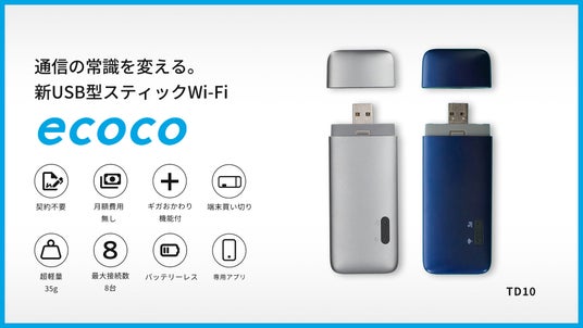 株式会社Lieferantが運営する、契約・月額費用不要、端末買切り型のUSB型スティックWi-Fi「ecoco(イココ)」が新色である「ミッドナイトブルー」を追加したことを発表いたします。