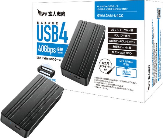 PCパーツブランド「玄人志向」は、USB4接続対応 M.2 NVMe SSD外付けケースを発売いたします。