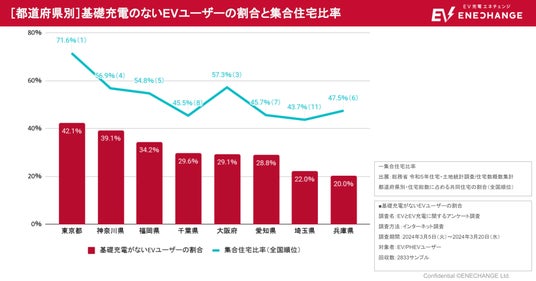 調査結果によると、「基礎充電なし」の回答者の割合が多い上位8つの都道府県は、住宅総数に占めるマンションやアパートなどの集合住宅の割合が高く*5、都市部ほど集合住宅における充電器設置の難易度の高さとそれによる整備の遅れが生じていることが浮き彫りとなりました。