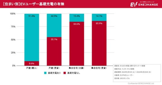 エネチェンジが2024年3月に実施したアンケート調査*4によると、集合住宅(分譲・賃貸)に住むEV・PHEVユーザーの85%が自宅に充電設備がない(基礎充電がない)と回答しています。