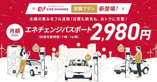 ENECHANGE(エネチェンジ)株式会社(本社:東京都中央区、代表取締役CEO:城口洋平、以下 エネチェンジ)は、EV充電定額プラン「エネチェンジパスポート」の提供を2024年6月3日(月)正午より開始することをお知らせいたします。太陽光発電等の出力が増加し余剰電力が生じやすい日中の時間帯に、定額での充電が可能となります。特に自宅に充電設備を持たないEVユーザーにとって大きな経済的メリットを提供いたします。また、エネチェンジパスポートの利用は早期に10万人を目指してまいります。