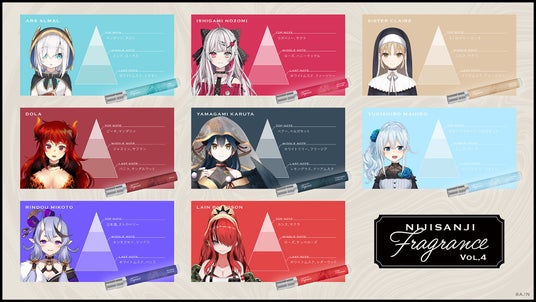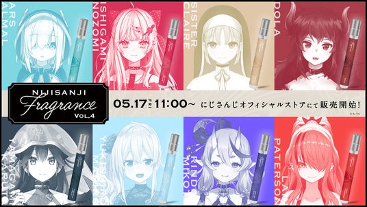 ANYCOLOR株式会社(本社:東京都港区 代表取締役:田角陸、以下「当社」)が運営するVTuber / バーチャルライバーグループ「にじさんじ」は、2024年5月17日(金)11時からにじさんじオフィシャルストアにて、「にじさんじフレグランス」vol.4の販売を開始いたします。
