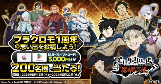 株式会社VIC GAME STUDIOS JAPAN(東京都新宿区、代表取締役:李 同校)は、テレビアニメ『ブラッククローバー』のアプリゲーム『ブラッククローバーモバイル 魔法帝への道 The Opening of Fate』(以下、ブラクロモ)において、本日よりリリース1周年直前イベントを開始しました。