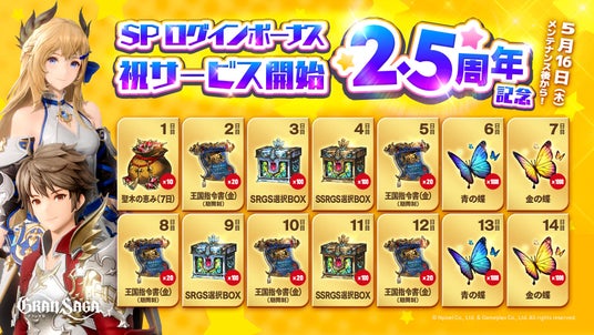 グランサガのサービス開始2.5周年を祝して、スペシャルなログインボーナスを実施中です!