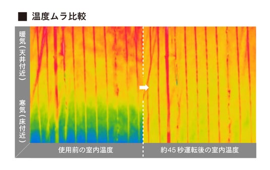 8畳間で約45秒※2運転させることで室内の温度ムラを緩和できます。冷暖房使用時にありがちな、足元だけ寒く、上半身だけ暑いなどの不快感を軽減します。