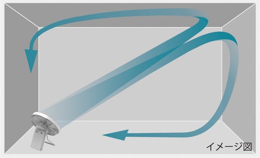“エクセルブレード”は、一方向へ直進性の強い風を大量に送ることができるため、シーリングファンのように首振り不要で空気循環を可能にしました。