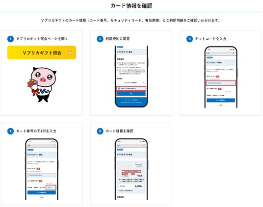 Vプリカギフトページへアクセスして、カード情報を照会することができます。