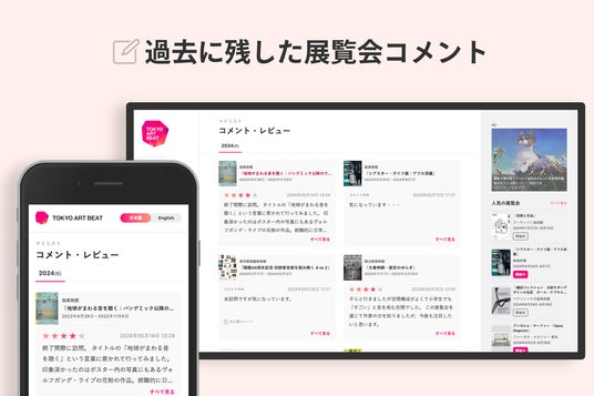 Tokyo Art Beatは2021年のリニューアル以来、掲載情報を全国へと拡大し常時1000件以上の展覧会情報を発信しています。このたび、より一層Tokyo Art Beatを楽しんでいただくため「展覧会コメント・評価機能」をリリースしたことをお知らせいたします。