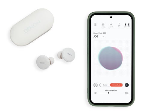 PerL ProとPerLの両方が、アクティブ・ノイズキャンセリングと外音取り込み機能「ソーシャルモード」を備えており、周囲の騒音を遮断することも、取り入れることも可能です。PerL Proは、2つの骨伝導マイクを含む8つのマイク(PerLは4つ)を内蔵しており、より精度の高いノイズキャンセリングを実現しています。PerL Proのノイズキャンセリング機能はインテリジェントな適応型となっており、周囲の騒音の大きさや、耳の密閉度に応じて効果の強さを自動的に調整します。PerLシリーズには、iOSおよびAndroid用のDenon Headphonesアプリが用意されており、リスニングプロファイルの作成や音質の調整、ノイズキャンセリング/ソーシャルモードの切り替え、タッチボタンのカスタマイズなど、様々な設定、操作を行うことができます。
