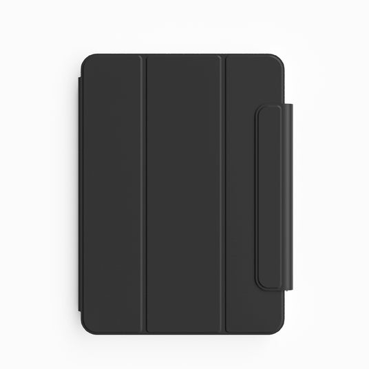シェルケースとPUレザーのアウターカバーがマグネットで着脱可能なセパレート式ケース。このデザインは、シーンに応じた使い分けを可能にし、iPad Airを最大限に活用できるように設計されています。色はブラック1色のみの展開となります。