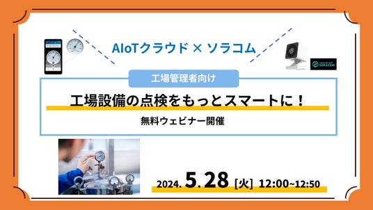 シャープの子会社である株式会社AIoTクラウド(本社:東京都江東区、代表取締役社長:松本 融)は、IoTプラットフォームを提供する株式会社ソラコム(本社:東京都港区、代表取締役社長:玉川 憲)と共催で、5月28日(火)に「工場設備の点検をもっとスマートに!」と題して無料ウェビナーを開催します。製造現場では昨今、人手不足が深刻化し、工場の安全稼働に不可欠な人力による設備点検業務の負担がますます大きくなっています。当社は、工場設備のメーターなどをカメラで撮影し、AIで読み取ることで点検業務を効率化するサービスを、固定カメラ・スマホカメラのハイブリッド利用に対応した『WIZIoT(ウィジオ)遠隔監視サービス』として提供を開始しています。本ウェビナーでは、『WIZIoT(ウィジオ)遠隔監視サービス』でどのように工場設備の点検を効率化できるのか、今ある課題に対して、どう解決するのかを説明いたします。また、固定カメラでありながら、リーズナブルに導入でき、設定も簡単なクラウド型カメラ『ソラカメ』に対応しており、ソラカメが遠隔監視サービスに適している理由についてもしっかりと解説いたします。●ソラカメは、株式会社ソラコムまたはその関連会社の商標または登録商標です。