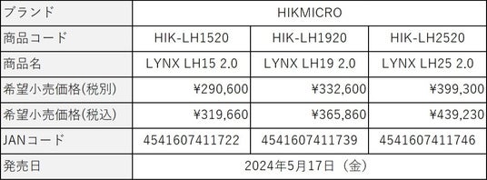 株式会社サイトロンジャパン(本社:東京都新宿区、代表取締役:渡邉晃)は、Hangzhou Hikmicro Sensing Technology 社の新製品サーマル単眼スコープ「HIKMICRO LYNX 2.0(ハイクマイクロ・リンクス2.0)」シリーズ3モデルを2024年5月17日(金)に発売いたします。同日より受注を開始し、受注後約1ヶ月の納期となります。