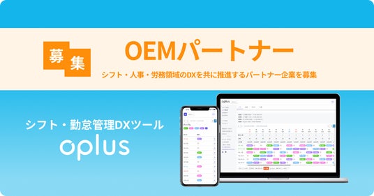 Oplus株式会社(本社:東京都渋谷区、代表取締役:杉原 和樹、以下Oplus)は、シフト・勤怠管理DXサービス「oplus」のOEM提供を開始いたします。