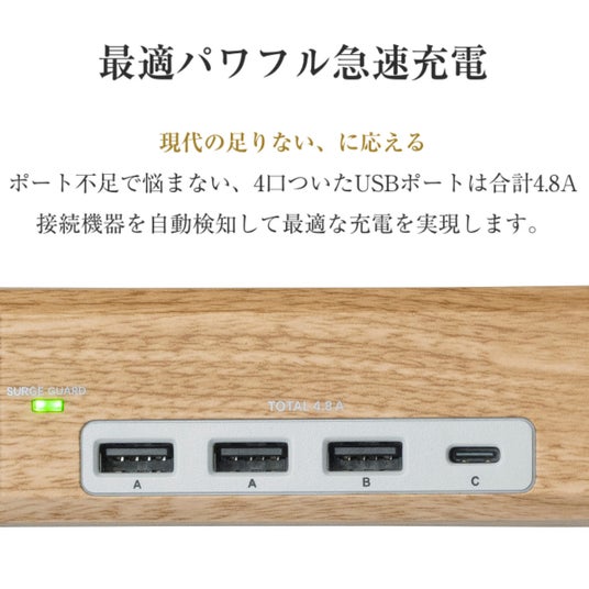 加えて、4つのUSBポートを(Type-A3個口/Type-C1個口)搭載することで、